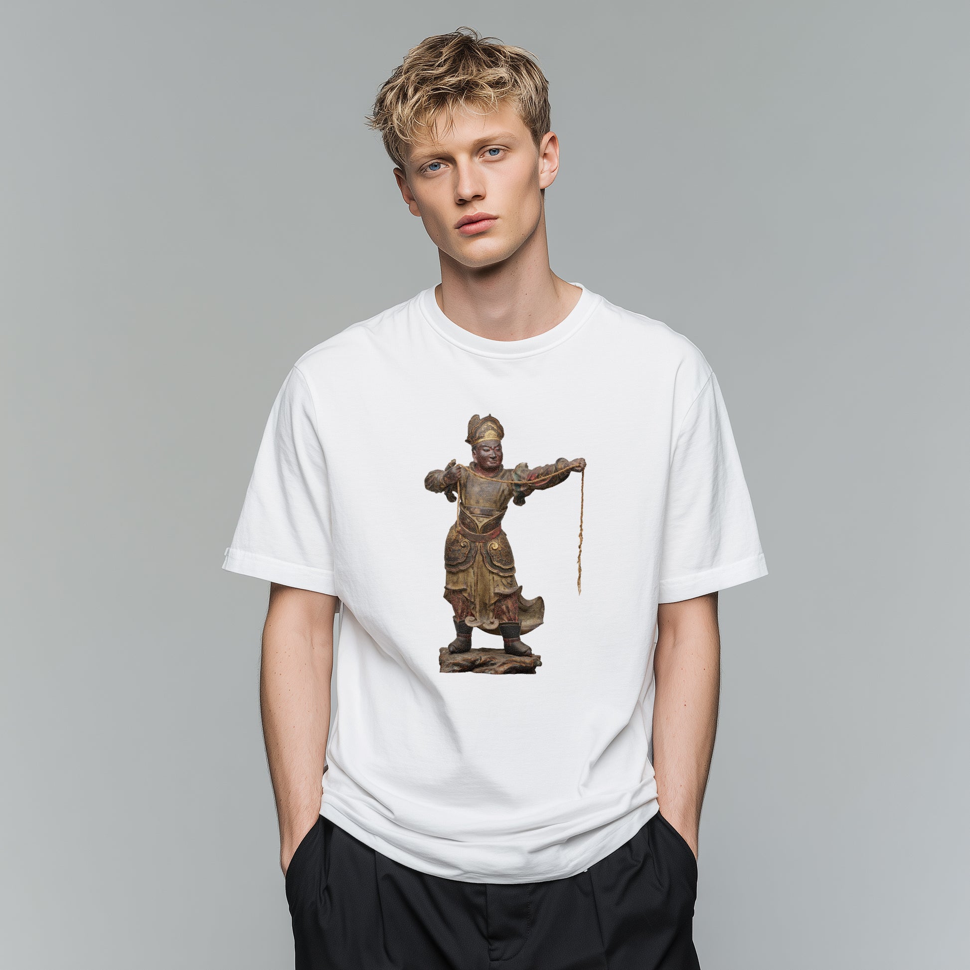 This statue depicts the King of Khotan holding the reins of a lion ridden by Monju Bosatsu. Khotan was a Buddhist kingdom located along the southern Silk Road, south of the Taklamakan Desert. According to legend, the King of Khotan supported and protected Buddhism during the lifetime of the Buddha.